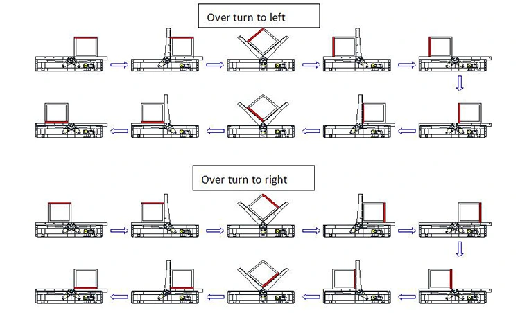 Utstyret består av en hovedmaskin, et hydraulisk system og et elektrisk kontrollsystem. En gruppe av to bjelkeflippere brukes til å velte samtidig og bevege seg. Flippprosessen til de to stråleflippene kontrolleres av avanserte hydrauliske synkroniseringsventiler for å sikre synkron rotasjon av hver velte arm under vippeprosessen. Kontroller omsetningsprosessen for arbeidsstykket manuelt for å oppnå en 90 ° omsetning av arbeidsstykket.