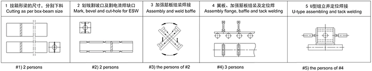 Følgende er produksjonsflytskjemaet for produksjon fra plater til H -bjelken og endelig inspeksjon.